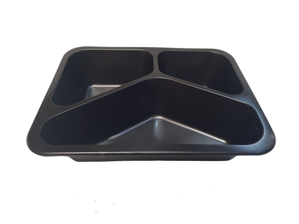 Trojdielny menu box vhodný na balenie studených a horúcich pokrmov.